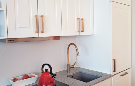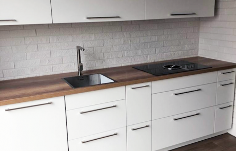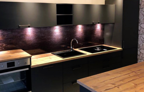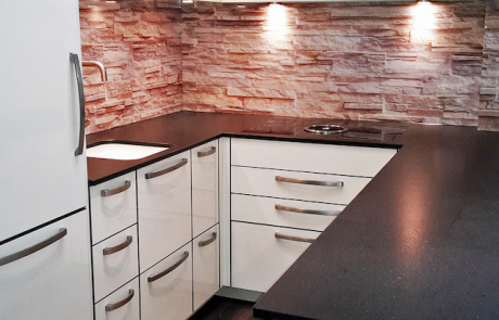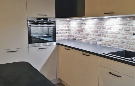 Alle drei sind erfahrene Küchenmonteure und können vor Ort noch kleine Anpassungen vornehmen oder beispielsweise schiefe Wände ausgleichen. Perfekte Zuschnitte, exzellente Passformen, saubere Fugen und das Organisieren der Geräteanschlüsse dürfen Sie erwarten.